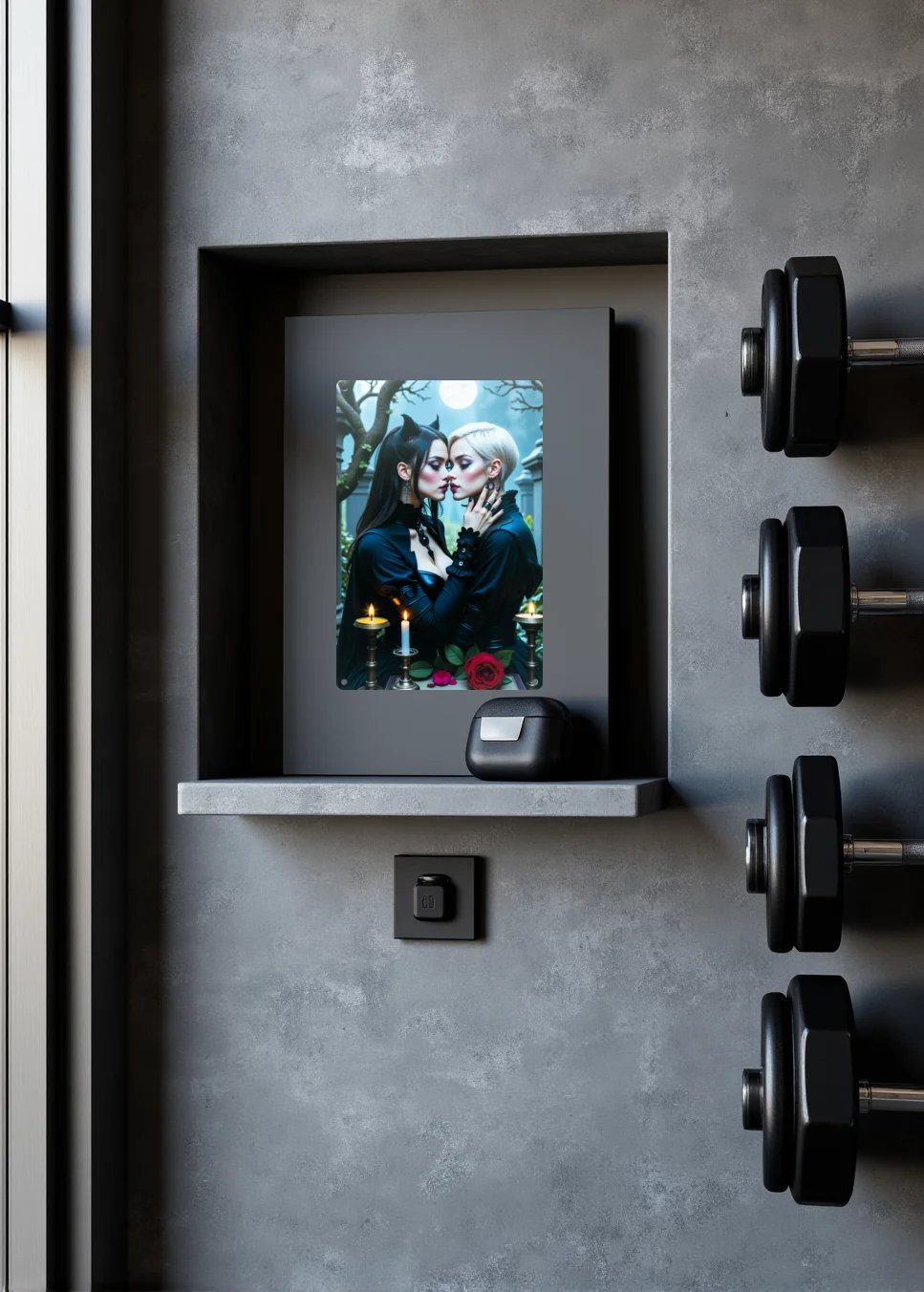 Wenn zwei Herzen im Schatten leuchten – ein düster-romantisches Kunstwerk über Nähe, Liebe und Rosen im Mondschein.